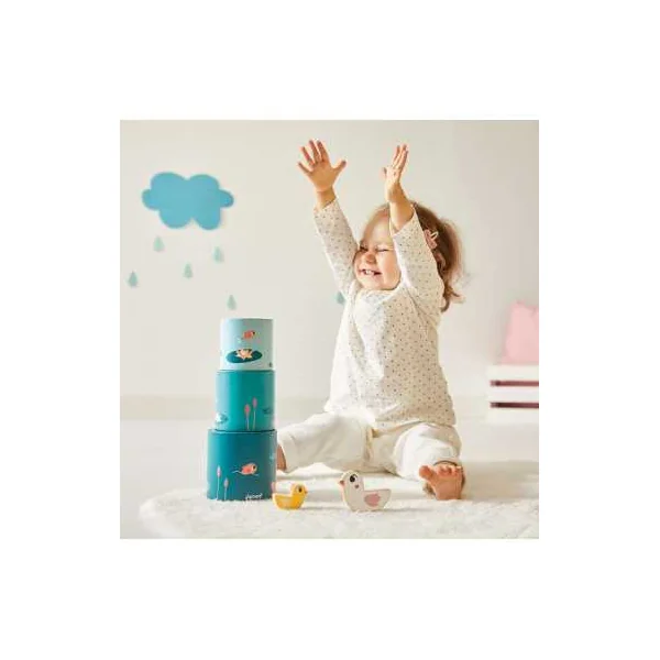 Janod a conçu une collection de boxes adaptées à l’âge des enfants pour les aider dans leur développement et leurs futures acquisitions. Un concept construit en collaboration avec une psychomotricienne. Chaque boite contient un livre explicatif contenant des informations sur le développement de l’enfant à chaque âge et un descriptif de chaque jouet et de ses objectifs pédagogiques.