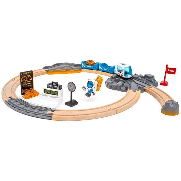 Explorez une nouvelle planète avec le coffret d’exploration spatiale de 23 pièces. Enfilez la combinaison de l’astronaute et partez à la découverte d’un paysage désertique à bord du train spatial, à la recherche de minéraux orange rares dans ce terrain rocheux. Ramassez les minéraux à l’aide de la combinaison spatiale magnétique et chargez-les dans les wagons de marchandises du train, prêts à être transportés vers le laboratoire spatial pour y être étudiés. À propos de BRIO World : BRIO World est notre système de jeu ouvert qui évolue avec votre enfant. Tous les jouets BRIO World sont compatibles entre eux pour créer un univers entièrement personnalisable, idéal pour stimuler les esprits en pleine croissance et les défiés. Il existe une infinité de combinaisons de jeux imaginatifs à explorer, et ce coffret sur le thème du transport s’intègre parfaitement dans cet univers. Il suffit de choisir une pièce et de commencer à construire votre monde.