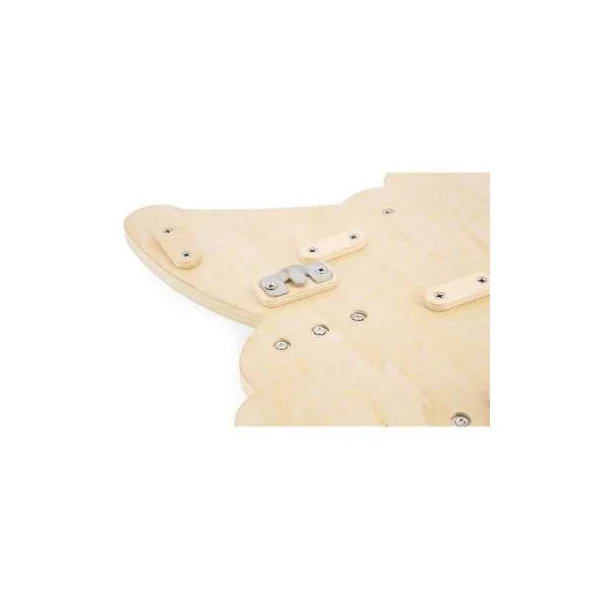 Ce panneau d’activités s’accroche au mur et permet aux enfants de développer leur motricité fine et leur dextérité de façon ludique. Il comprend 14 activités : un labyrinthe, une serrure ouvrant une porte, un miroir caché, un œil rotatif sonore, des dents en feutrine, 2 surfaces tactiles en silicone, un clavier numérique, un boulier, un perroquet qui fait tinter la cloche, un système de boutons avec élastique, un engrenage caméléons, une sangle ouverture plastique, une sangle ouverture velcro et une sangle ouverture fermeture éclaire.