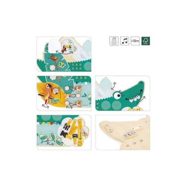 Busy Board Croco Tropik – Janod – Jouet d’éveil en bois