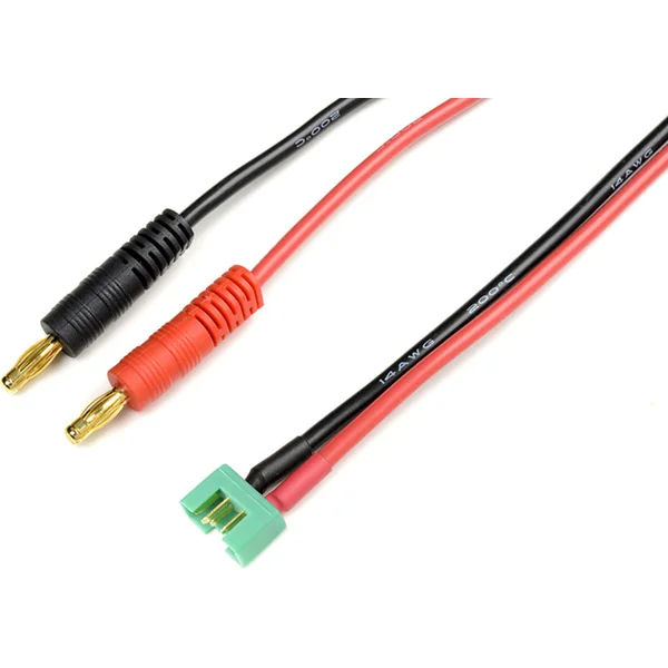 Câble de charge avec bananes 4 mm et connecteur MPX mâle, câble en silicone 14AWG, 30 cm.