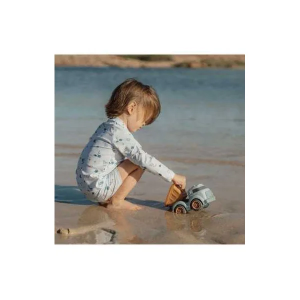 Découvrez le camion benne bleu de la collection Ocean Dreams de Little Dutch, un jouet parfait pour les petits passionnés de construction dès 18 mois.