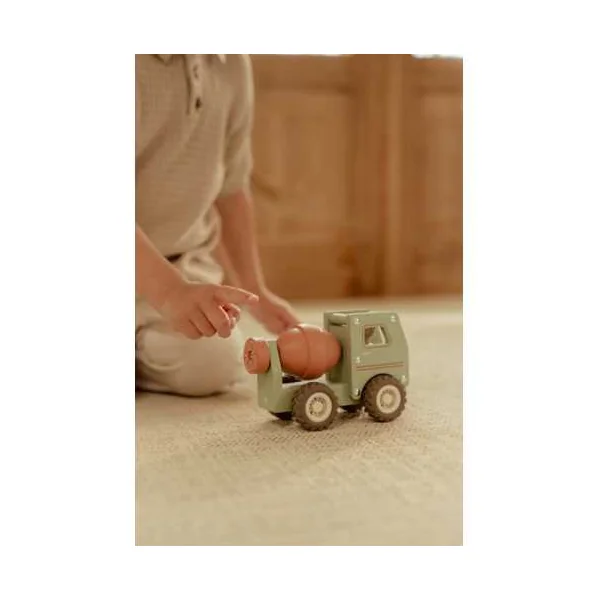 Le coffret comprend un camion avec une toupie rotative pour un effet réaliste pendant le déplacement, ainsi que des roues en caoutchouc pour une conduite fluide et silencieuse. Il comprend également un ouvrier en bois pour enrichir les jeux de rôle.
