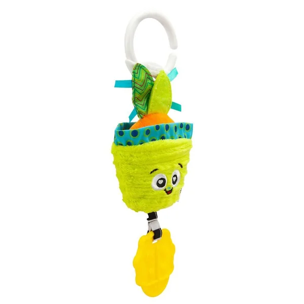 Mini clip à tirer pour « cueillir » Candy la Carotte. Bébé découvre de multiples activités : des rubans en satin à toucher, des feuilles avec bruits de papier-froissé, des bruits de hochet et différentes textures à explorer. Coccinelle de dentition à attraper et mordiller. Idéal pour jouer à coucou-caché. Stimule le toucher, l’audition, et aide à développer la motricité fine. Pratique, son attache permet de l’emmener partout !
