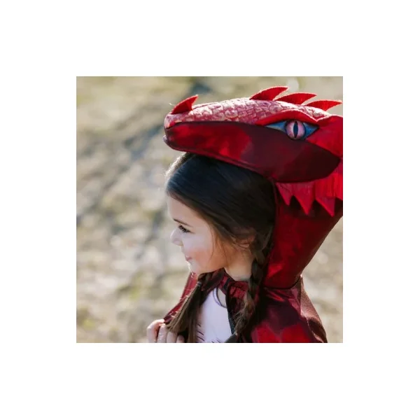 Découvrez la cape de dragon rouge irisé de taille 4 à 6 ans de Great Pretenders, un magnifique costume magique et majestueux pour se transformer en dragon.