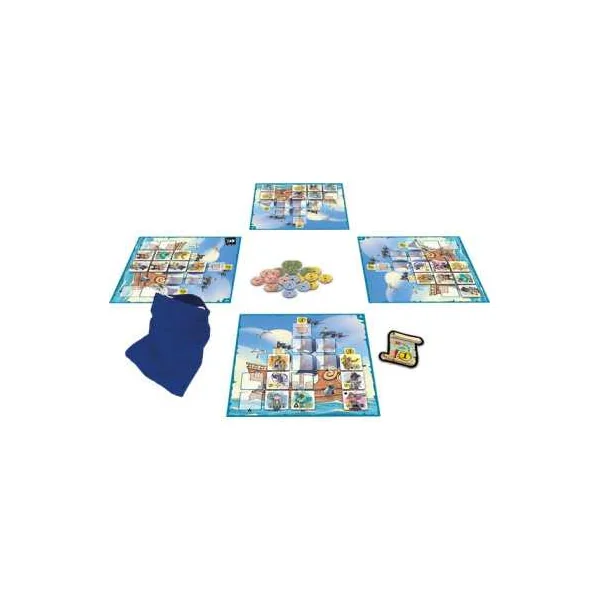 La boite de jeu contient 72 tuiles personnages recto-verso, 58 jetons « Pièces », 1 grand jeton « Carte au trésor », 1 sac en tissu, 3 aides de jeu, 10 plateaux aventures double-face et la règle de jeu.