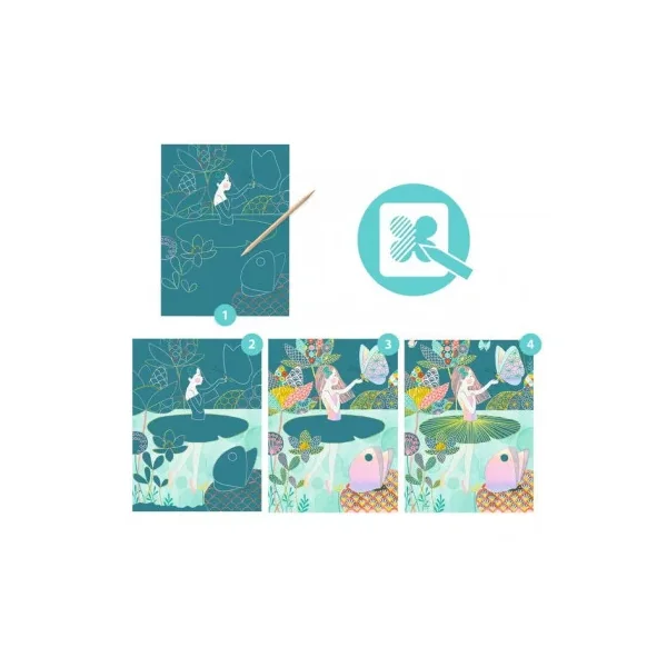 Découvrez la pochette de cartes à gratter L’étang de Djeco, un loisir créatif ludique et original pour les enfants de 7 à 12 ans.