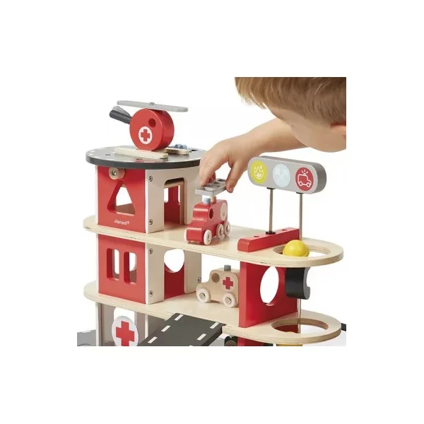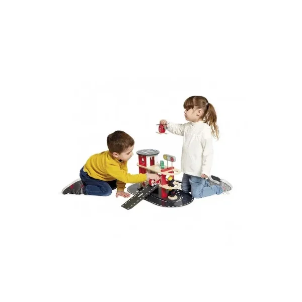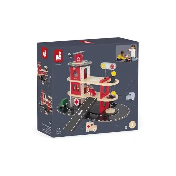 Découvrez la caserne de pompiers Bolid de Janod, une caserne en bois pour les enfants à partir de 2 ans. Un cadeau de la nouvelle collection Bolid au look vintage.