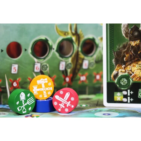 Celtae est un jeu d' »échange d’ouvriers » utilisant un rondel dans lequel les joueurs choisissent les actions à effectuer pendant leur tour. À leur tour, les joueurs échangent l’un de leurs trois ouvriers actifs avec l’un des trois ouvriers de l’espace d’action qu’ils souhaitent réaliser, puis ils effectuent l’action – qui sera favorisée s’ils disposent dans leur réserve d’ouvriers de types spécifiques : agriculteurs, bâtisseurs, soldats et nobles.