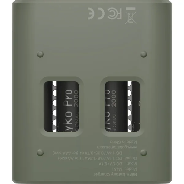 Chargeur USB Eco M451 pour batteries GP. Contient 4 piles AA GP ReCyko Pro 2000mAh. Très petites dimensions du chargeur. Indication LED de l’état de charge. Gestion automatique du processus de charge. Détection des batteries endommagées. Charge de 1 à 4 batteries. 4 canaux de charge. Chargement des batteries fournies en environ 4 heures.