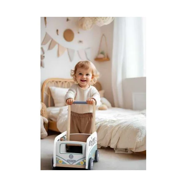 Découvrez le chariot de marche Van multi-activités de Speedy Monkey, un chariot de marche en bois à pousser pour apprendre à marcher et pour éveiller les enfants dès 12 mois.