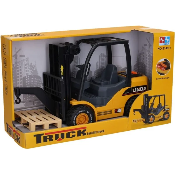 - Émet des effets lumineux et sonores. Activation par des boutons à l’arrière (bruit de moteur, levage, klaxon).