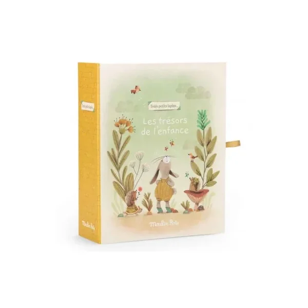 Des chaussons pour les petits pieds des filles et des garçons à offrir en cadeau de naissance dans une jolie boîte cadeau illustrée à l’aquarelle.