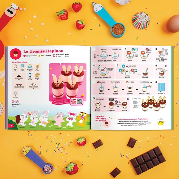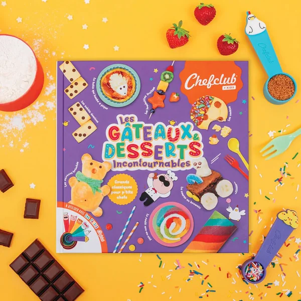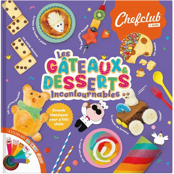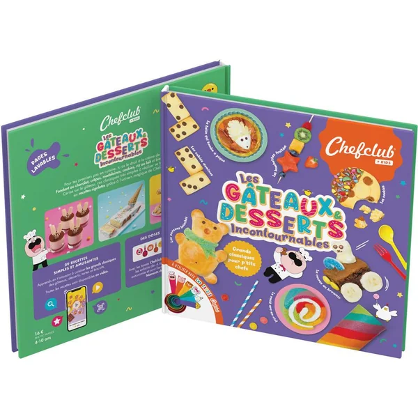 Grands classiques pour p’tits chefs ! Des recettes simples et délicieuses avec des décors extraordinaires ! Fondant au chocolat, crêpes, madeleines, cookies, riz au lait et bien plus encore. Cerise sur le gâteau, ces classiques très simples à réaliser se transforment en recettes rigolotes grâce à un univers magique. 25 recettes de gâteaux et desserts incontournables + des recettes bonus pour pimper vos préparations. Des recettes classiques et créatives illustrées en pas-à-pas avec les Tasses Chefclub (non fournies avec le livre). Des petites histoires et anecdotes qui racontent comment vos gâteaux préférés ont été inventés. Des pages imperméables et lavables. Toutes les recettes disponibles en vidéos via des QR codes faciles à scanner.