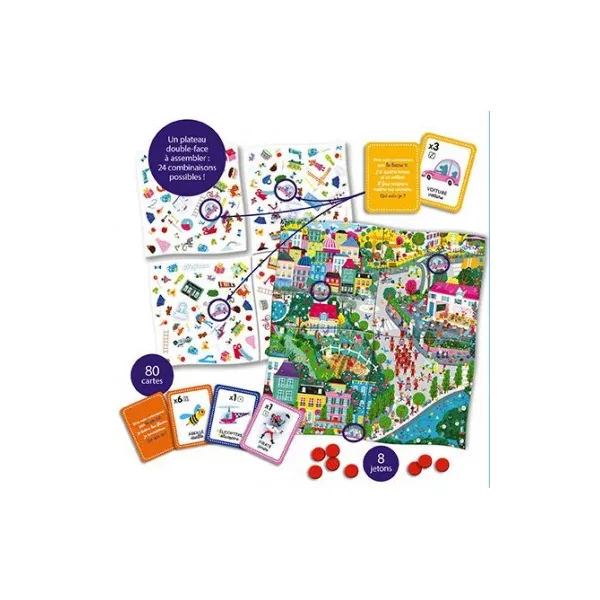 Un jeu éducatif pour jouer en famille dès 5 ans, dans lequel vous devrez répondre à des devinettes, puis chercher tous ensemble des objets sur le plateau de jeu.