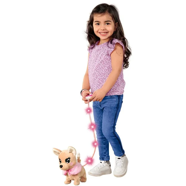 Peluche chihuahua ChiChiLove filoguidée 20cm avec laisse lumineuse. ChiChiLove Loomy avance, aboie et se trémousse en bougeant la queue.