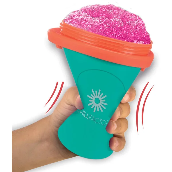 SIMPLE À UTILISER Pas de glace, pas de mélangeurs, pas de gâchis ! Le fabricant de granité Chill Factor est si facile à utiliser – tout ce que vous avez à faire est de le mettre au congélateur, d’attendre qu’il gèle, puis d’ajouter votre boisson réfrigérée préférée et de presser ! Juste devant vos yeux, vous verrez apparaître du slushy en quelques secondes ! Une fois que vous avez fait votre slushy, vous pouvez utiliser la paille à cuillère réutilisable incluse pour en profiter ! Le Chill Factor Slushy Maker est transportable pour que vous puissiez profiter de votre granité n’importe où une fois fabriqué !