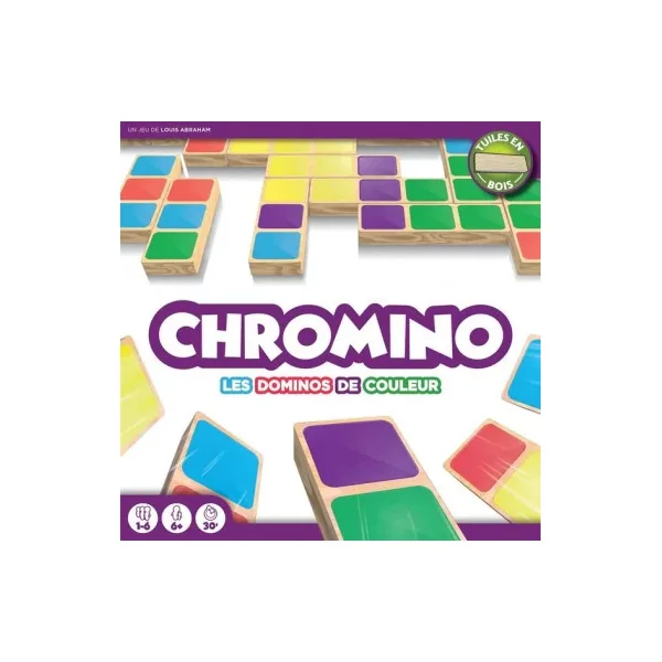 Découvrez le jeu Chromino, un jeu de domino en bois avec des couleurs, un jeu simple de tactique et d’observation pour toute la famille à partir de 6 ans.