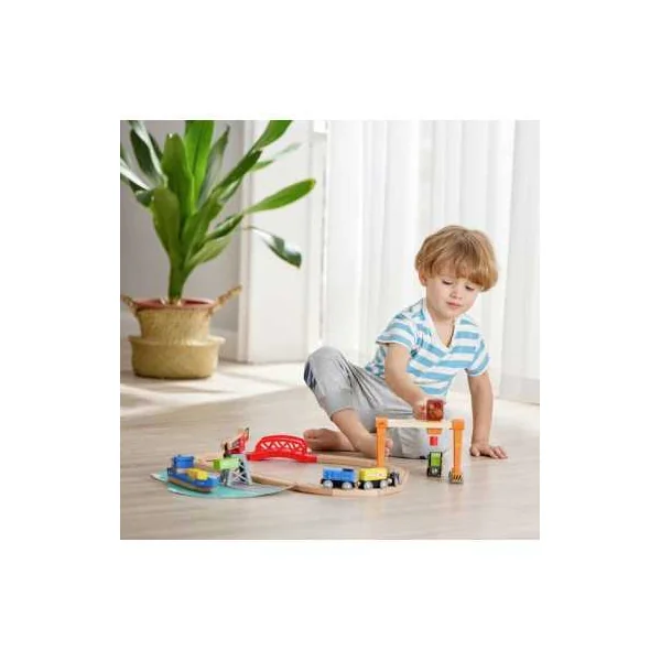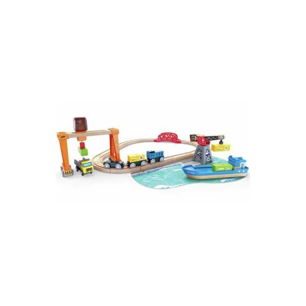 Découvrez le circuit de train cargo et grue de Hape, un magnifique circuit de train pour les enfants à partir de 3 ans, composé de rails en bois et d’accessoires. Un ensemble portuaire idéal pour familiariser les enfants avec le transport maritime et ferroviaire.