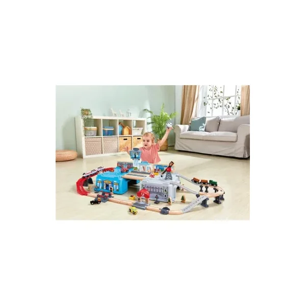 Ce coffret très complet vous permet de construire votre propre métropole et d’envoyez des trains, des avions, des taxis et des gens pour l’explorer. Facile à transporter et à ranger, la boite et son couvercle servent de pièces additionnelles pour créer de superbes circuits de train avec un personnage, des trains, des éléments de paysage, une grue, des panneaux…
