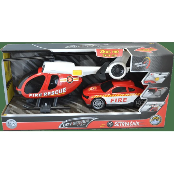 CITY SERVICE CAR – 1:14 Ensemble pompiers hélicoptère + voiture