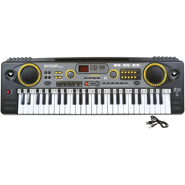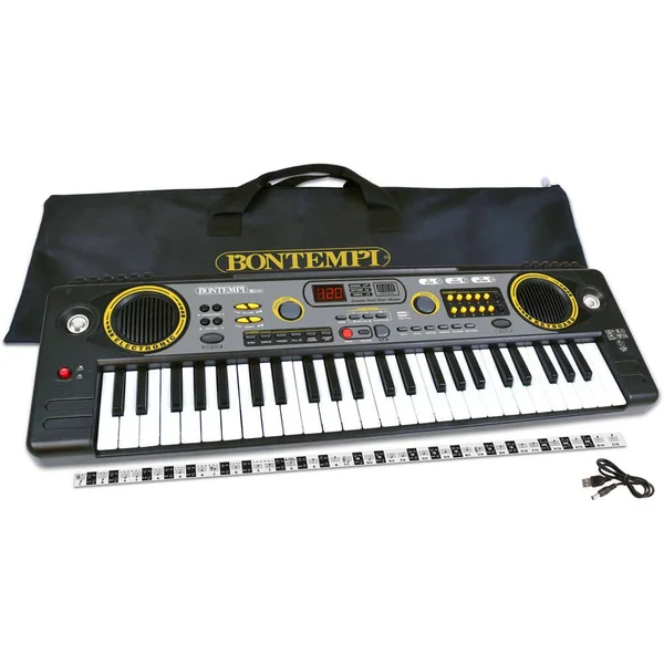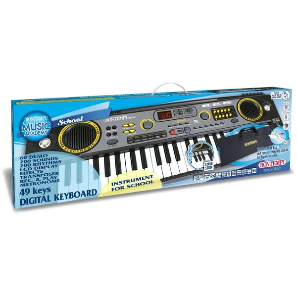 Avec 200 sons, 200 rythmes, 60 mélodies pré enregistrées, 8 pads avec sons de batterie et 1 écran pour visualiser les fonctions (apprentissage, programmation, transposition, effets…). Livré avec 2 prises : casque et micro (non fournis) et 1 sacoche de transport.