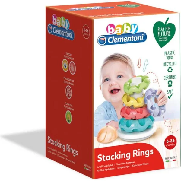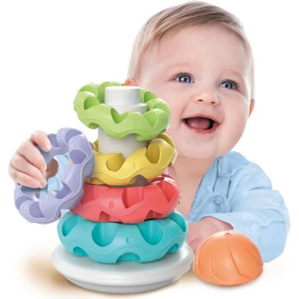 Pyramide pliable Clementoni Baby avec 5 anneaux colorés de différentes tailles et couleurs.