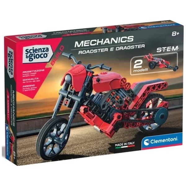 Le kit Laboratoire Mécanique – Roadster et dragster de la société Clementoni de la série Science & Play présente aux enfants de manière ludique le monde de la technique et développe leur pensée technique.