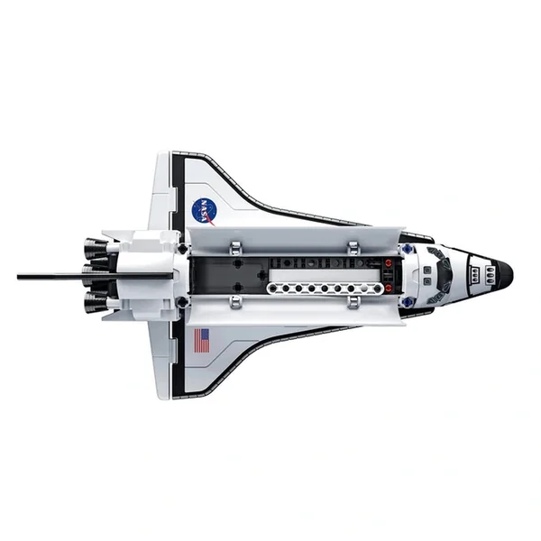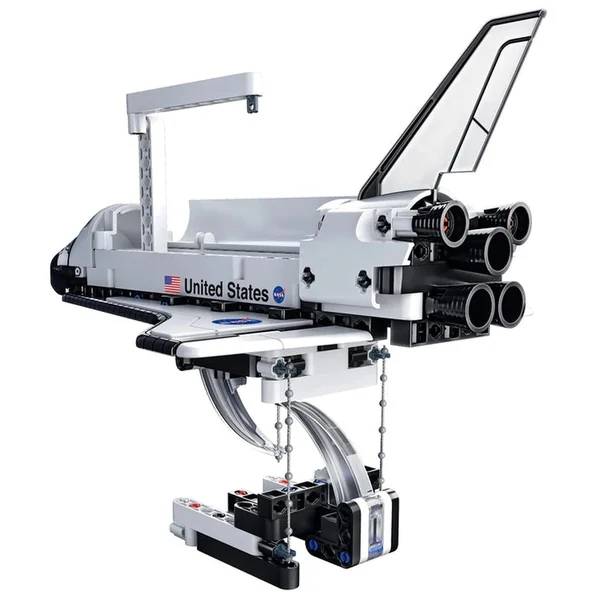 Once constructed, the shuttle is designed for dynamic play. It can detach from its base, allowing for imaginative adventures in a zero-gravity environment. The adjustable ailerons can be raised or lowered, simulating real-life shuttle maneuvers, while the cargo bay opens to reveal the iconic Canadarm, a robotic arm used by astronauts in space missions. This interactive feature not only enhances the play experience but also educates children about the tools and technologies that make space exploration possible.