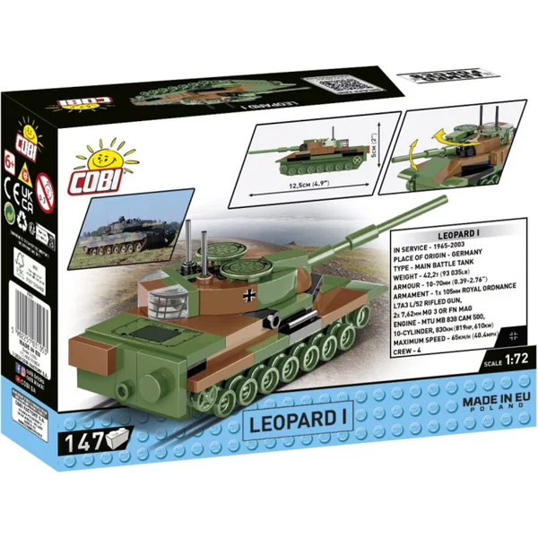 Construisez le modèle Leopard I, un char de combat principal de deuxième génération développé en Allemagne dans les années 60. Il a servi dans la Bundeswehr et de nombreuses autres armées de l’OTAN et est devenu un symbole de la puissance blindée allemande. Dans certaines armées, il reste en service aujourd’hui, bien qu’il soit remplacé par des chars plus modernes.