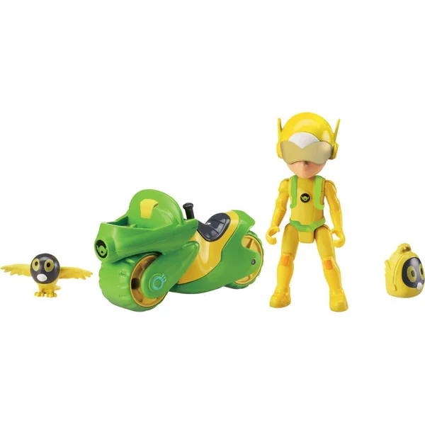 Coffret comprenant 4 figurines (7,5 cm), 4 motos et des accessoires.