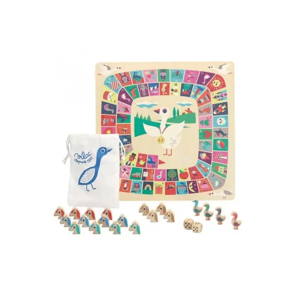 Découvrez le coffret de jeux dada oie illustré par Ingela P. Arrhenius de Vilac, un coffret en bois vintage et rétro comprenant un jeu de l’oie et un jeu des petits chevaux pour jouer à partir de 4 ans.