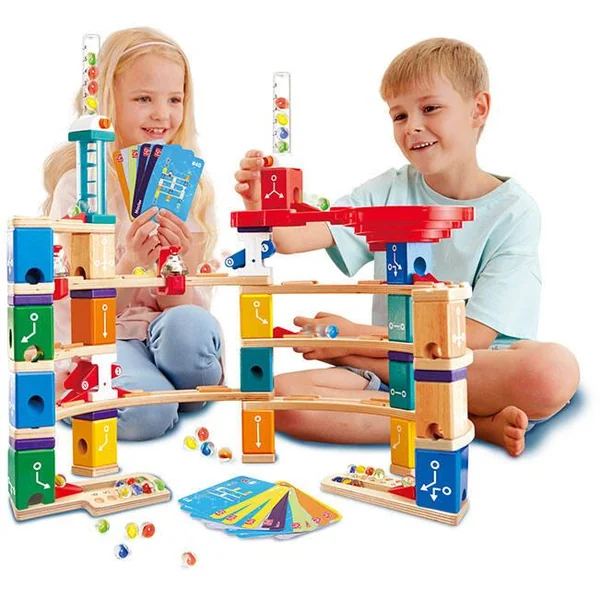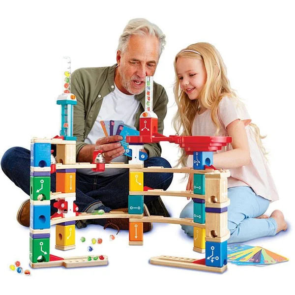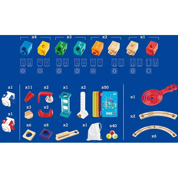Approfondissez vos connaissances en matière de codage avec cet impressionnant coffret de circuits de billes Quadrilla ! Construis les tours et les pistes et trouve les blocs manquants pour déverrouiller le code ! Les défis sont infinis avec ce jeu de billes de codage hors écran ! Une fois que tu as tout installé, tu peux relever les défis sur les 50 cartes incluses et faire rouler tes billes ! Comprend 20 blocs, trois volets à trous, 2 distributeurs de billes, 11 accélérateurs, 5 anneaux d’escalade, 8 anneaux d’escalade en plastique, une bascule bleue, une bascule rouge, 40 billes, un sac en coton, deux collecteurs de billes, 6 grandes pistes courbes, 2 petites pistes courbes, 1 spirale double face et 50 cartes de défi. Ce coffret est une excellente introduction interactive aux principes du codage et est également idéal pour encourager la pensée logique.