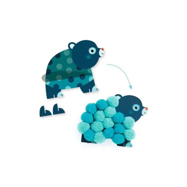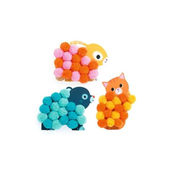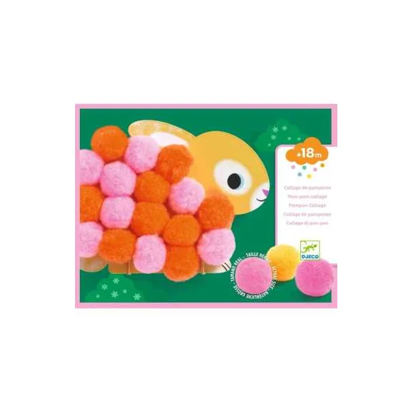 Découvrez Collage de pompons Animaux et ronds pompons de Djeco, un coffret créatif conçu pour accompagner les enfants dès 18 mois dans leurs premières activités manuelles tout en douceur.