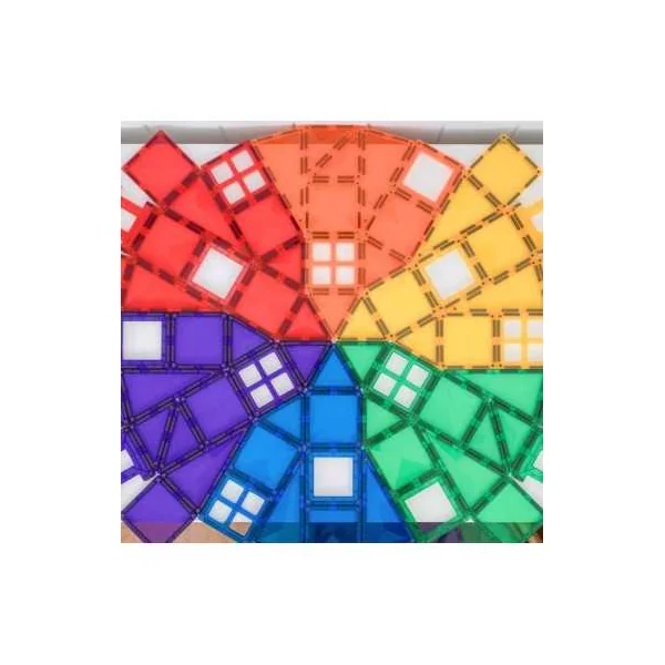 Composé de petits et grands carrés, de triangles équilatéraux, à angle droit et isocèles, ainsi que de clôtures, de fenêtres et de cadres de porte dans toutes les couleurs de l’arc-en-ciel, ce pack est parfait pour jouer en famille !