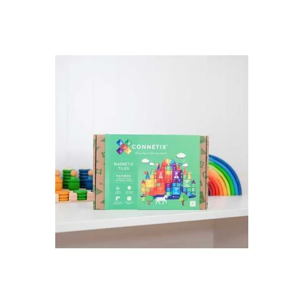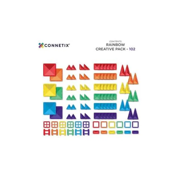 Découvrez le Pack créatif arc en ciel 102 pièces de Connetix, un jeu de construction magnétique pour les enfants dès 3 ans avec 102 pièces de constructions pour réaliser de magnifiques constructions en 2D ou en 3D en assemblant les pièces magnétique de couleur arc en ciel.