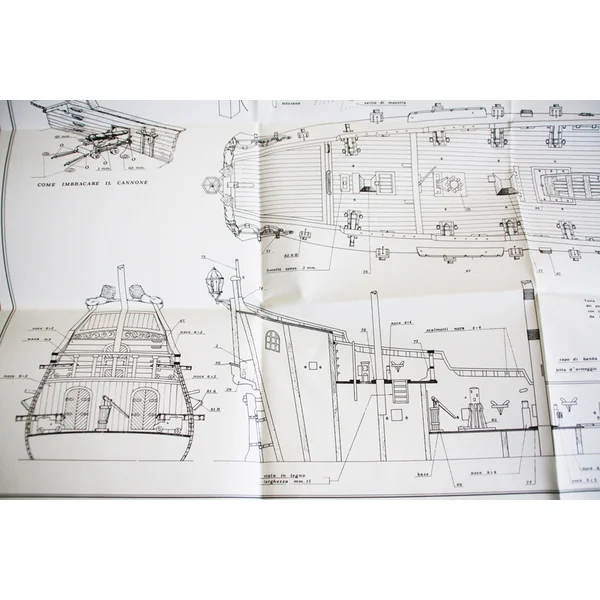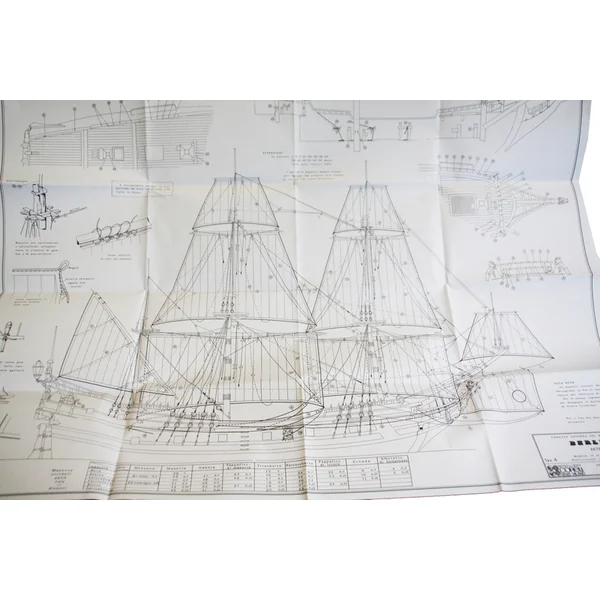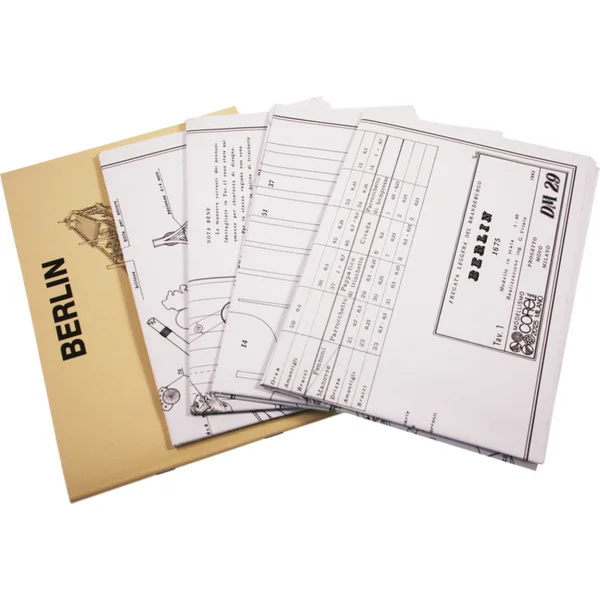 Le set contient un ensemble complet de documentation de dessin du modèle à l’échelle 1:1 avec le processus de construction, les pièces sont soigneusement marquées sur le dessin et il y a aussi une liste des différentes parties du modèle.