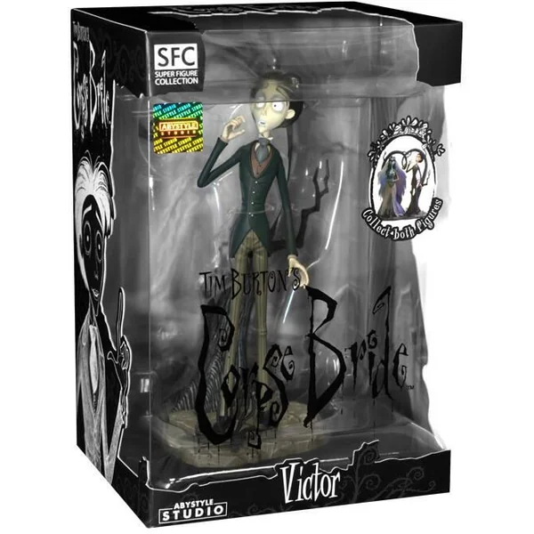 Victor Van Dort est aussi surpris que nous : il fait maintenant partie de la collection SFC par ABYstyle Studio ! Les fans du chef-d’œuvre de Burton reconnaitront immédiatement son corps longiligne, sa chevelure négligée et ses expressions d’étonnement si caractéristique. À collectionner avec la sublime figurine d’Emily, venant offrir un funèbre diorama, qui réunit les deux protagonistes autour d’un arbre sinistre à la forme de cœur. – Figurine en PVC de la gamme SFC – Hauteur : 21 cm – Echelle : 1/10ème – Complétez votre collection en l’associant à la figurine Emily assortie