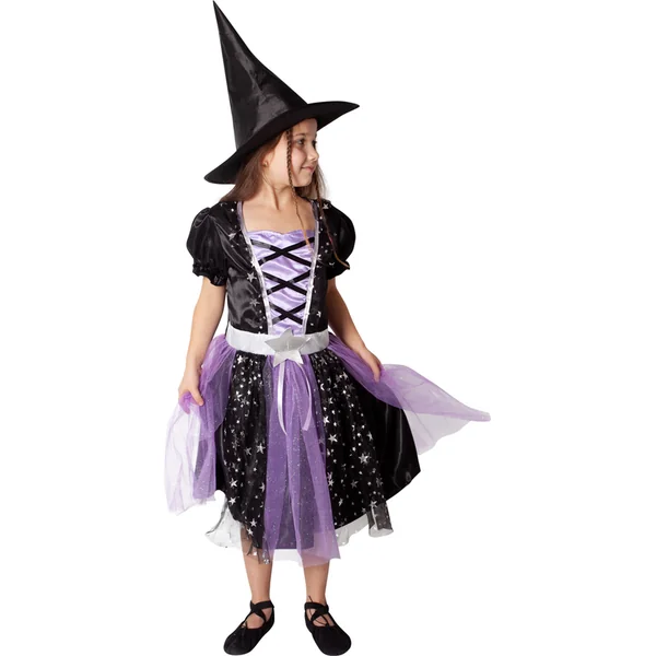 La robe est ornée d’un imprimé d’étoiles argentées. L’emballage comprend un chapeau parfaitement assorti. Devenez la star de la fête de carnaval ou d’Halloween !