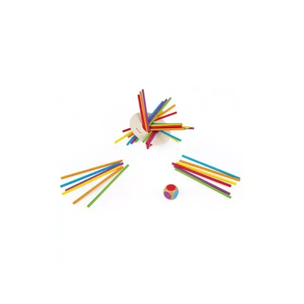 Lancez les dés puis attraper la couleur demandé. Fais preuve de sang froid et défie tes adversaires en retirant un maximum de bâtons colorés.