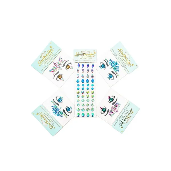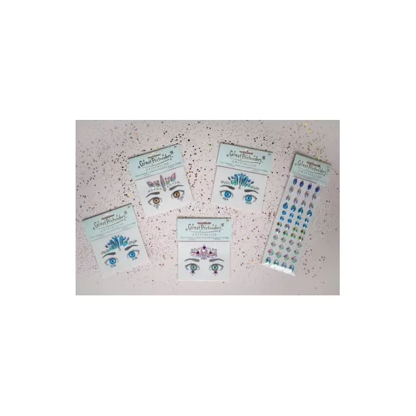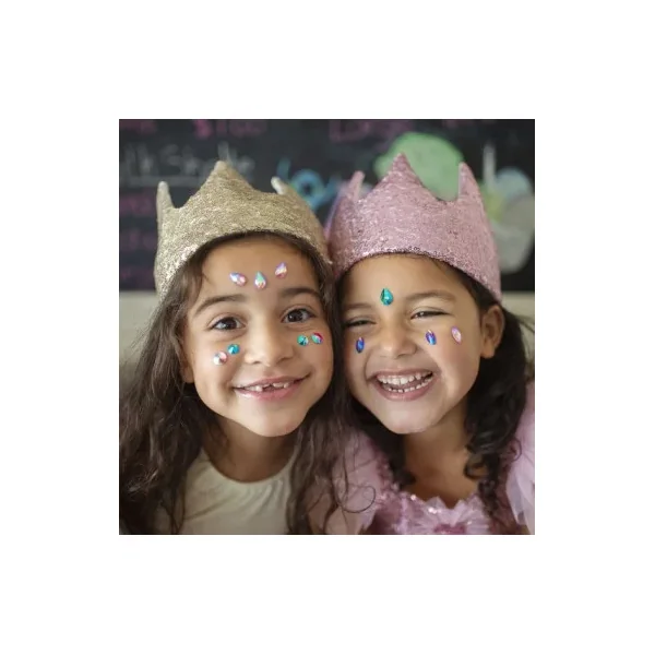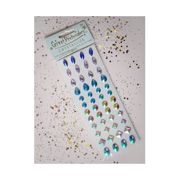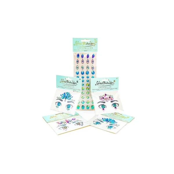 Découvrez les Cristaux autocollants pour le visage de Great Pretenders, une planche de stickers de peau en formes de cristaux à placer sur votre visage à partir de 3 ans.