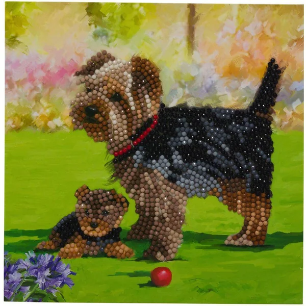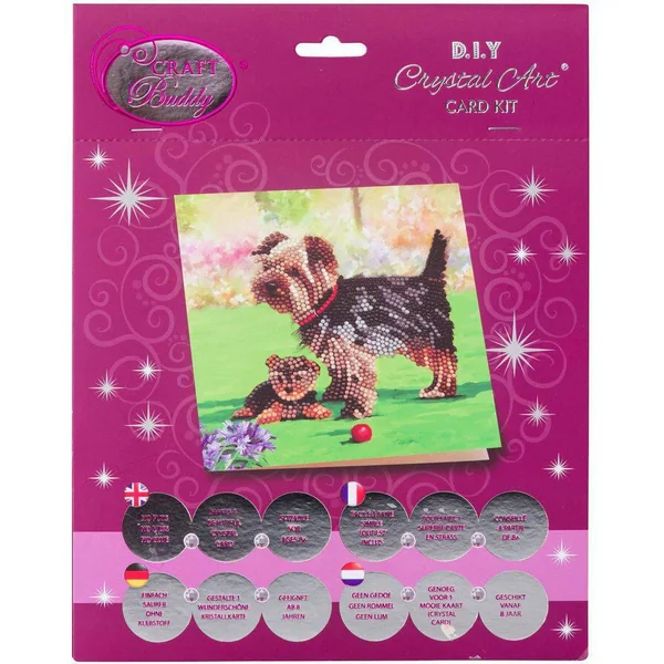 Contenu du kit carte : 1 carte auto-adhésive 18 x 18 cm modèle Yorkshire, 1 stylet à diamanter, de la cire, des strass colorés et 1 enveloppe. Un kit créatif pour créer une carte de voeux originale ou une carte d’anniversaire tout en cristaux scintillants ! Facile à réaliser, toute la surface est imprimée, seules les zones adhésives et numérotées sont à diamanter. Une enveloppe est incluse dans chaque kit, c’est pratique la carte est prête à être envoyée ! DU NOUVEAU DANS LA BRODERIE DIAMANT ! Amusant, stimulant, brillant…! Le principe de la broderie diamant est simple et ludique : réaliser une carte scintillante ou un tableau pré-encadré sur lequel le modèle est numéroté. Chaque couleur de strass correspond à un numéro. Il suffit de coller les strass colorés sur le support adhésif. Une activité zen à tester dont on ne peut très vite plus se passer ! Tout le matériel nécessaire est inclus dans les kits !