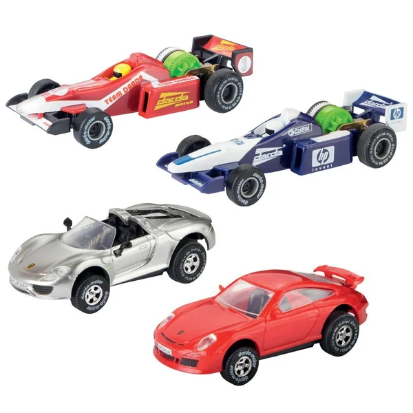 La voiture a un moteur à rétrofriction « Darda Motor » très puissant. La vitesse de la voiture atteint 960 km/h à l’échelle 1:60, ce qui correspond à 16 km/h. Pas besoin de pile, ni d’électricité. Compatible avec tous les circuits et voitures Darda. Modèle selon disponibilité. Vendu à l’unité.