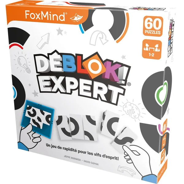 Un défi en duo : chaque joueur dispose d’une série identique de 5 blocs et doit être le premier à recomposer le motif indiqué par la carte piochée.