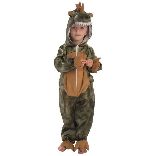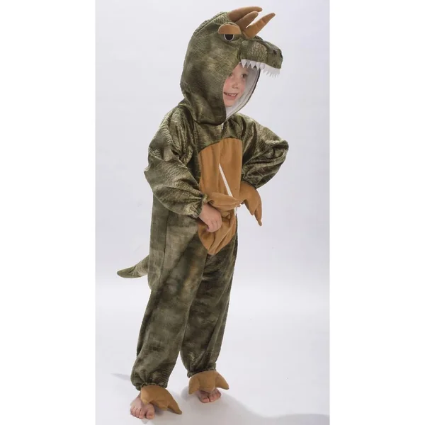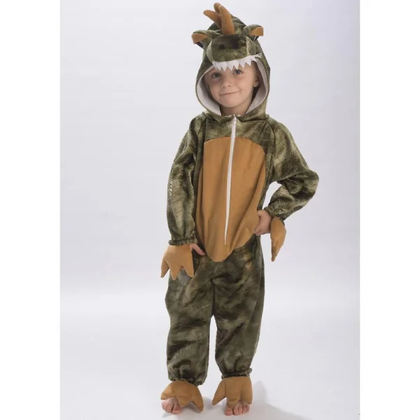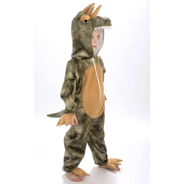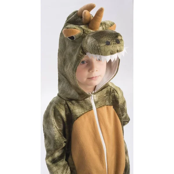 Déguisement de dinosaure. Contient : 1 combinaison zippée. Le modèle est destiné aux enfants de 8-10 ans. Stature : 138 cm. Tour de poitrine : 70 cm. Tour de taille : 58 cm. Le costume est livré sur cintre dans une housse réutilisable avec fermeture éclair. La housse est en PVC avec le dos en intissé, dimensions 45 x 2 x 70 cm. Combinaison : 100 % polyester, lavable à 30°. Chaussures non fournies.