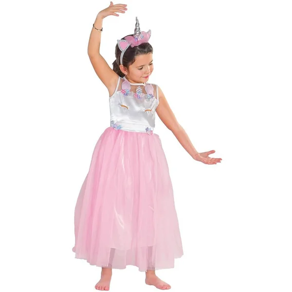 Déguisement de licorne. Contient : 1 robe licorne (lavable en machine) avec un serre-tête licorne. Le modèle est destiné aux enfants de 3-4 ans. Chaussons non fournis.