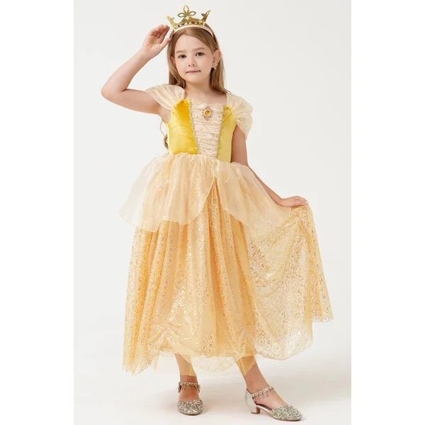 Cette robe éblouissante est plus qu’un simple vêtement; elle est une invitation à l’imagination et au jeu de rôle. Adaptée pour offrir confort et liberté de mouvement, elle permet aux enfants de s’amuser tout en incarnant leur personnage de conte de fées préféré. Les petits détails scintillants de la robe captivent les regards, faisant de chaque enfant la star de la fête.