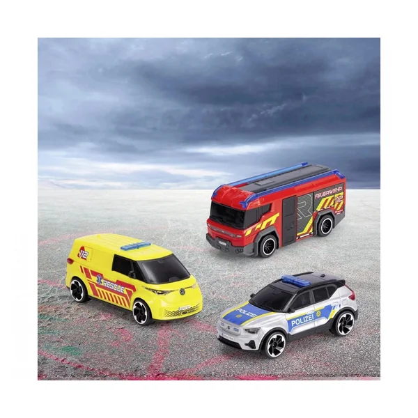 Each vehicle in the Dickie Toys SOS Team set is not only a toy but also a gateway to imaginative play. The vibrant colors and realistic designs of the cars capture the essence of their real-world counterparts. The VW ID. Buzz ambulance, adorned in bright yellow with the iconic 112 rescue markings, the classic red Rosenbauer Penta fire engine, and the sleek silver and blue Volvo EX40 police car are sure to delight any child. These detailed models encourage role-playing, allowing children to step into the shoes of their favorite everyday heroes.