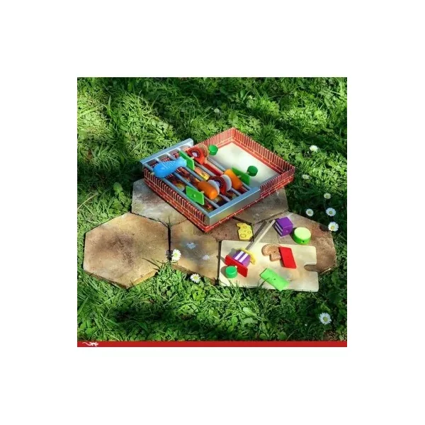 L’intérieur de la boîte sert de jeu avec le montage de la grille au-dessus du foyer. Lorsque le moment de jeu est terminé, tous les accessoires se rangent dans la boîte.