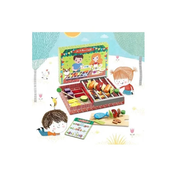 Découvrez la dinette Joe et Max grill de Djeco, une dinette en bois originale pour réaliser de savoureux barbecues à partir de 4 ans.